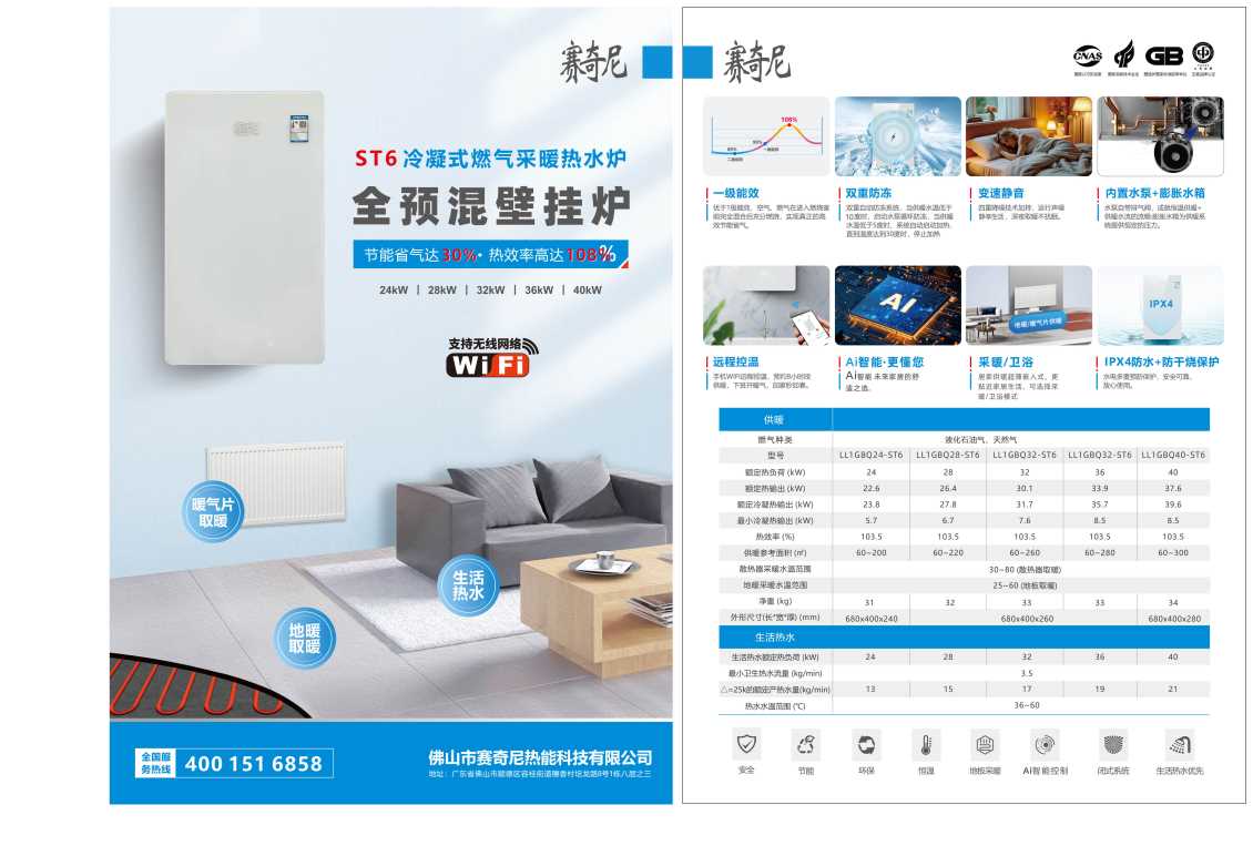 四川ST6冷凝式燃气采暖热水炉 全预混壁挂炉
